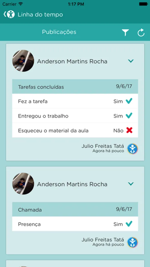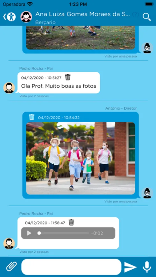 * Recados: envie um recado diretamente para os pais ou responsáveis e seja avisado quando receber uma resposta.