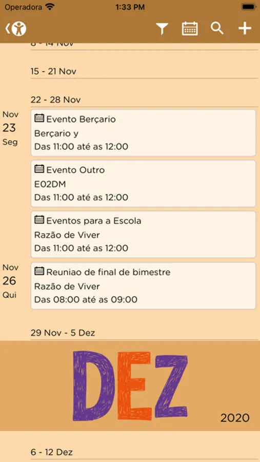 * Calendário: crie atividades para os alunos da turma (ou da escola) e acompanhe a confirmação dos participantes.