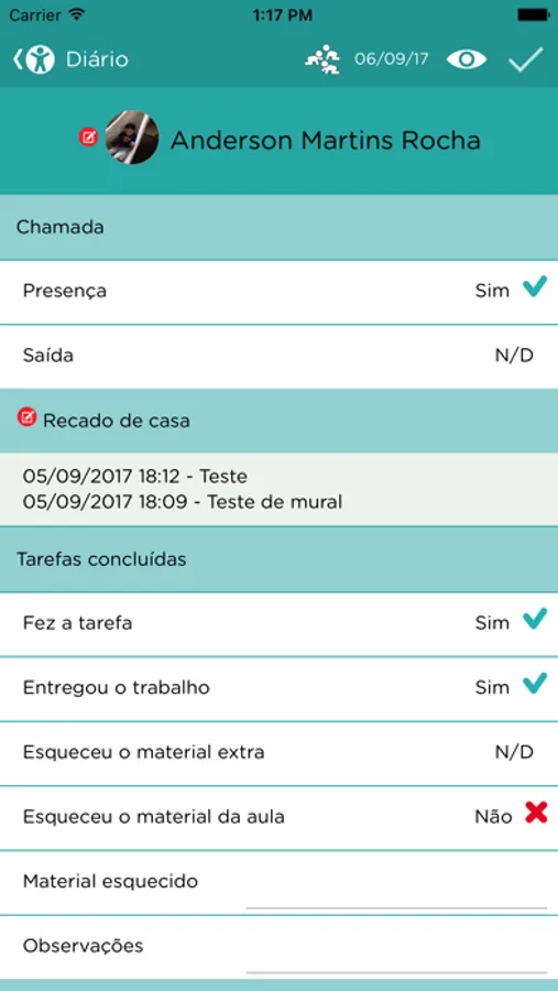 * Diário: Informe as atividades dos alunos, presenças, avaliações, trabalhos escolares, etc. e os pais terão acesso instantâneo às informações. Como estava a participação nas provas e tarefas? Tem tema de casa? Tem alguma prova agendada? Fez todas as refeições? Tomou o medicamento?