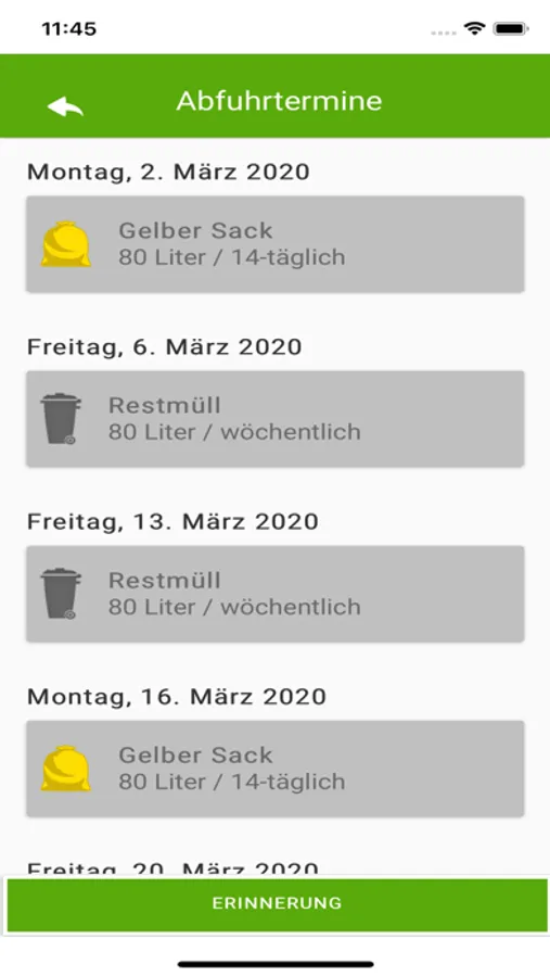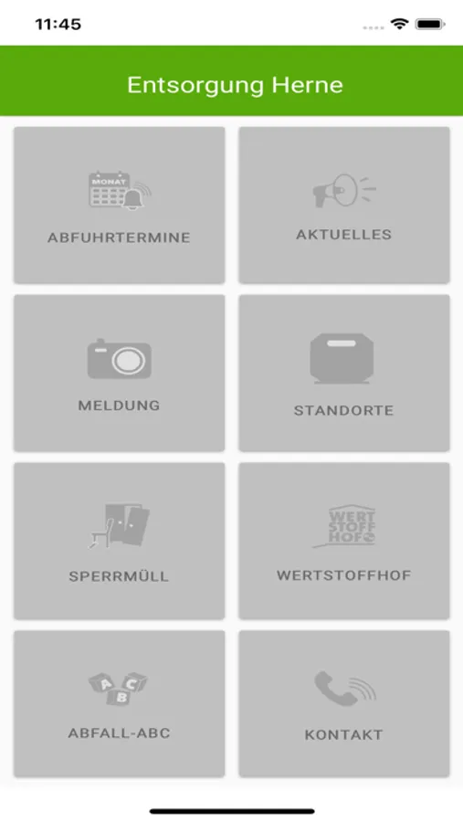 Alle Funktionen der Entsorgung Herne APP fürs Smartphone auf einen Blick: