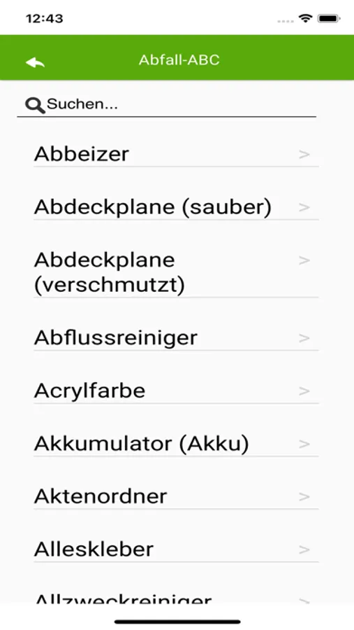 - Information über die Annahme verschiedener Abfallarten über ein integriertes Abfall-ABC