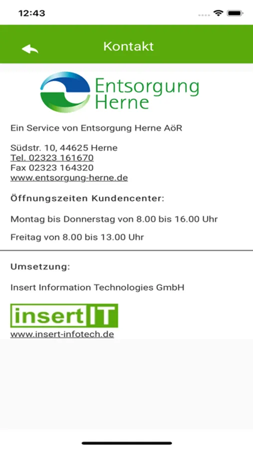 - Kontaktdaten des Kundencenters und des Wertstoffhofes der Entsorgung Herne.