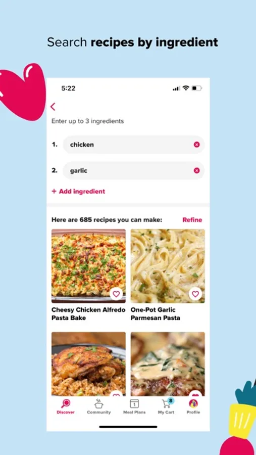 Ingredient Search: Find the perfect recipe based on ingredients you have on hand, with our innovative "ingredient search" feature that generates dish ideas from just 3 ingredients.