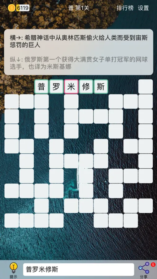 《Puzzle8填字》有多达数千道的题库,还可以下载更多的填字题目。您在线即可获得金币奖励,以使用填字答案的提示功能。另有完善的成就系统,设置系列的目标让您挑战!