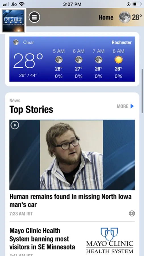 KIMT News 3 on the go. Now you can stay up to date on the latest local news, weather and sports from across North Iowa and Southern Minnesota. Watch streaming video of newscasts, find the stories that interest you. Interactive, animated local radar and forecasts. Local sports scores and stories. Download the free KIMT News 3 app now.