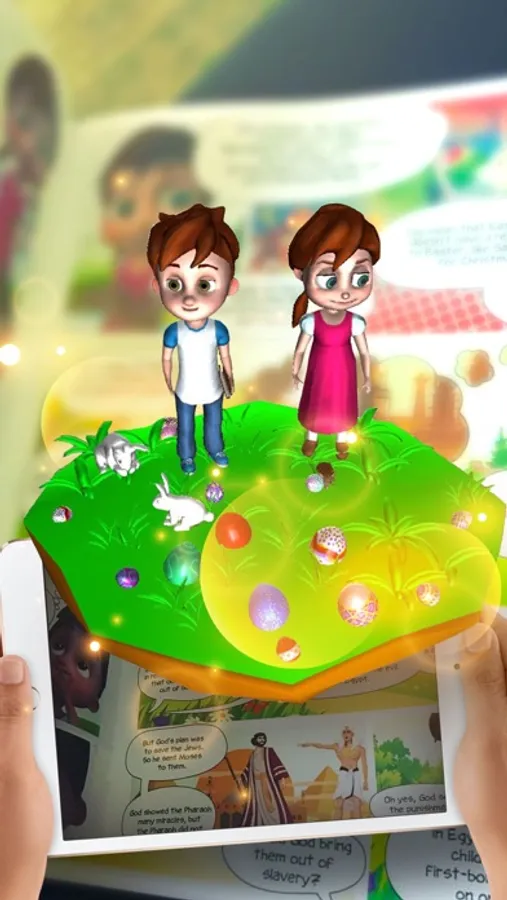 "3D Easter" is a mobile app with augmented reality working together with the live book "Easter Story" which you can order online or buy in bookstores (you can find the book suppliers in your country on blueggvision.com).