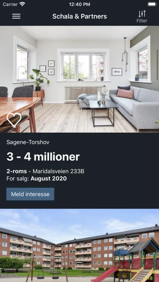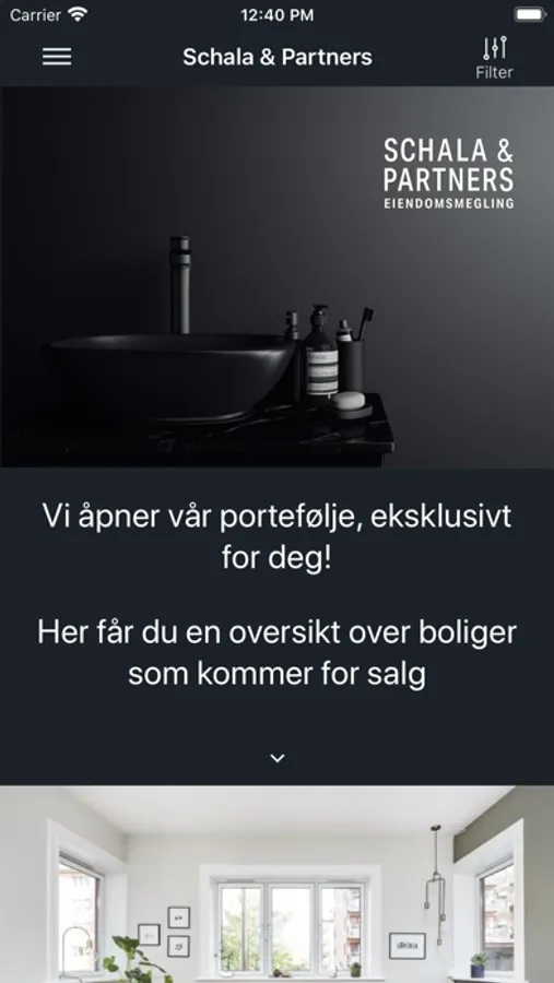 I denne appen får du en oversikt over boliger som kommer for salg. Du får mulighet til å lagre favoritter, be om å bli holdt oppdatert, samt melde interesse for boliger.