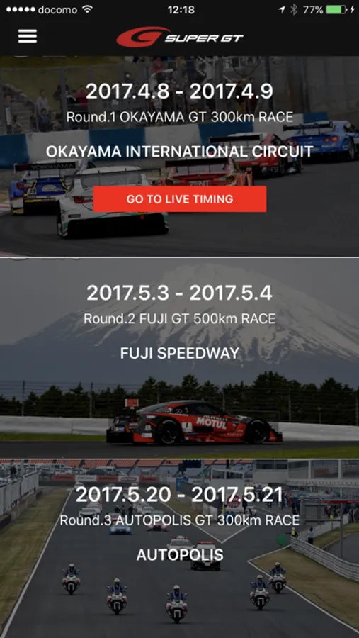 We will also deliver the live timing information of FIA-F4, Porsche Carrera Cup Japan which is a joint race.