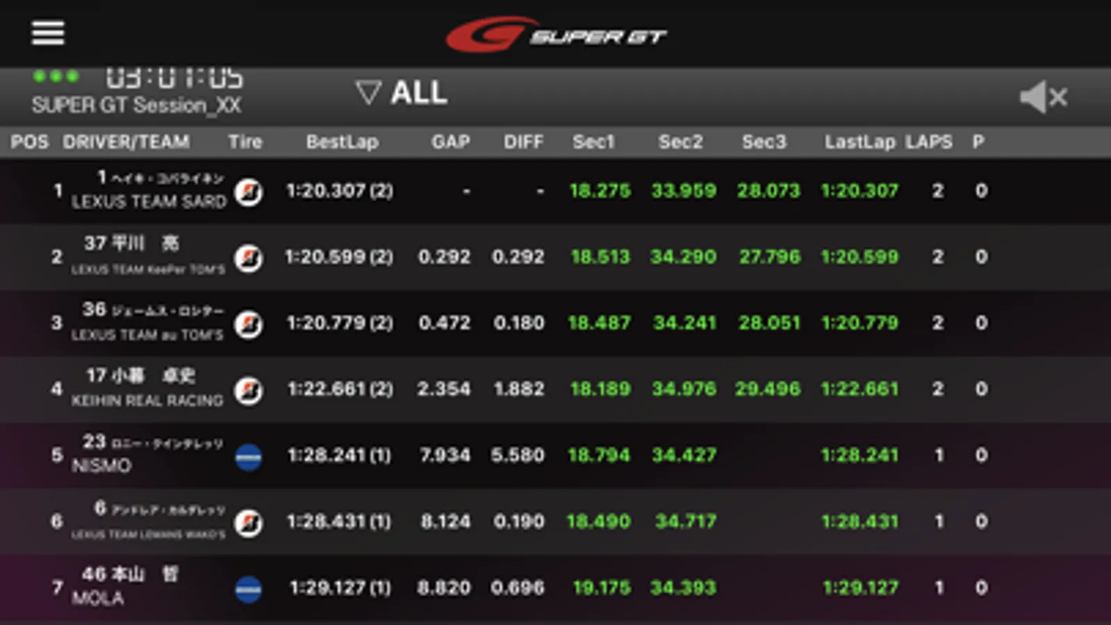 2023 SUPER GT of the official Live Timing App