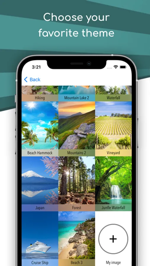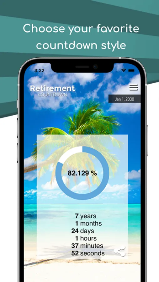 You can customize the look of this app by choosing different themes and background images. Where would you like to retire or go on a long vacation? Do you like the beach? Or hiking in the mountains, skiing in the snow? Or watching beautiful sunsets?