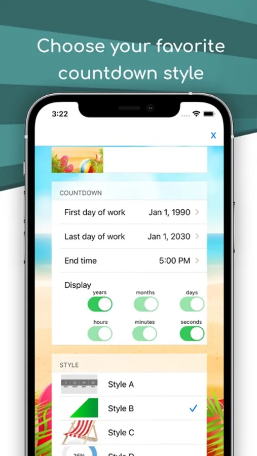 Choose your favorite background theme, change styles and share your countdown via email or social media