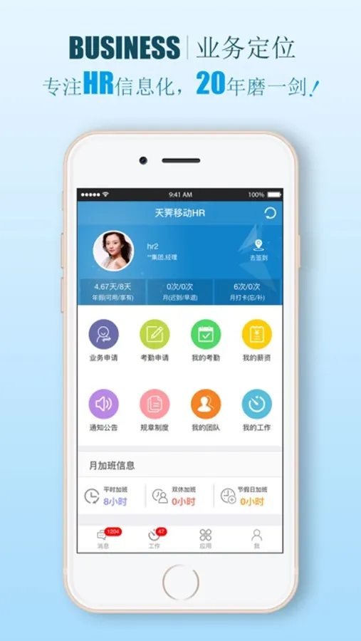 |-支持经理人随时随地管理下属团队的加班、请假、员工变动、人员编制与结构配置;