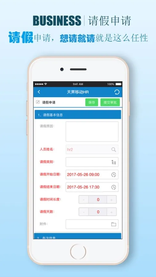 |-可以发起如:转正、晋升、物品领用、印章申请等人事业务流程并跟进;