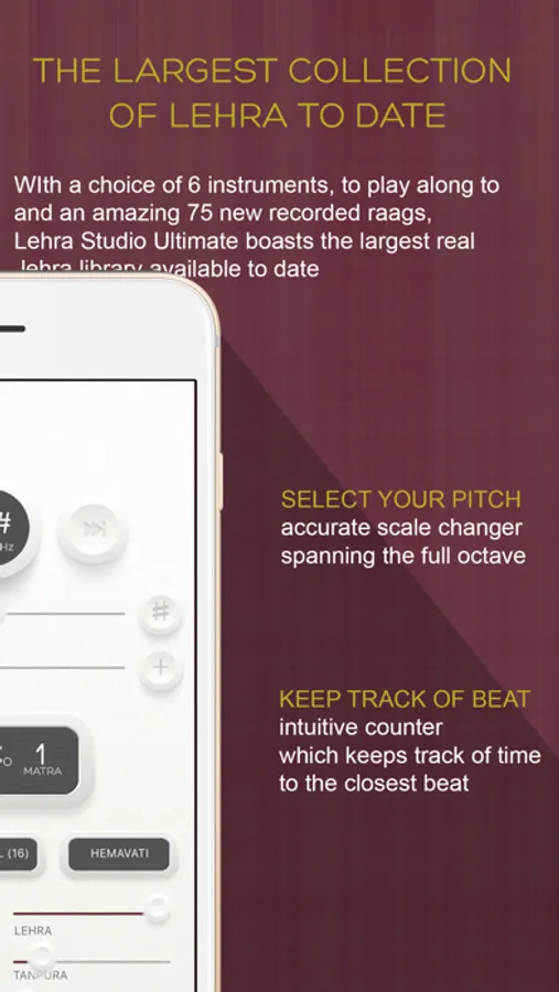 Whether you have just started playing tabla, or are a seasoned professional, Lehra Studio Ultimate is a must-have app for all tabla players.