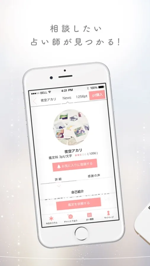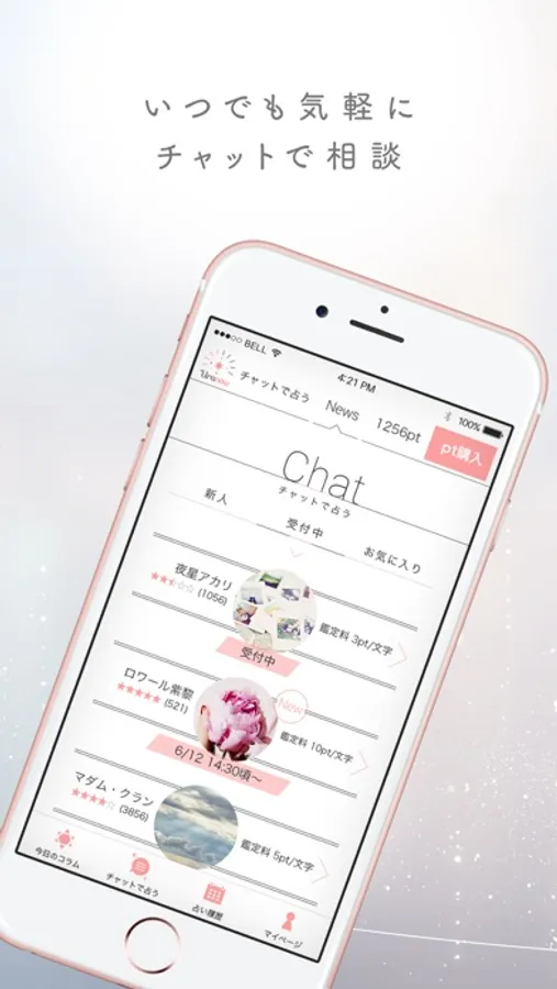 チャット占いでは、アプリ内専用通貨の「Pt」を使用します。【料金は1文字2Pt(2円)~】