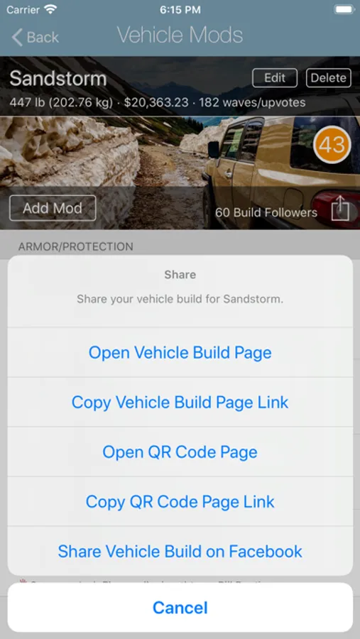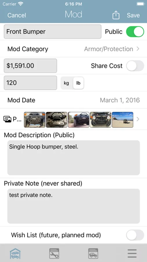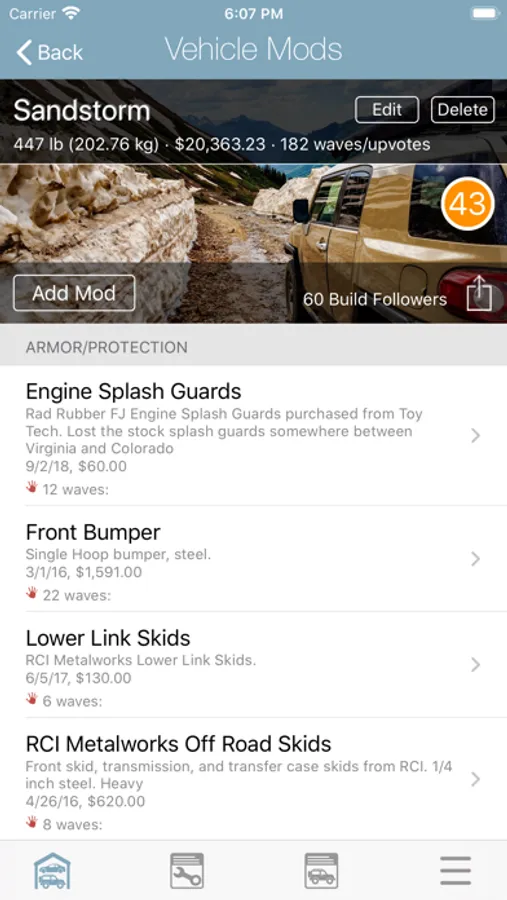 • Track and share vehicle modifications