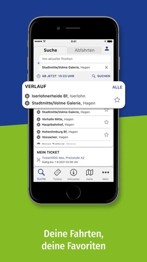 • Persönlicher Bereich: Für regelmäßige Fahrten mit Bus und Bahn kannst du im persönlichen Bereich deine wichtigsten Ziele speichern und erhältst künftig wichtige Informationen auf einen Blick.