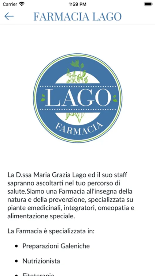 La Farmacia della Dott.sa Lago Maria Grazia è da sempre attenta a prendersi cura dei propri Clienti, per questo motivo ha deciso di offrire ai propri clienti un’APP dove poter essere sempre aggiornati sulle novità, offerte ed eventi e avere anche la possibilità di prenotare un farmaco o un dispositivo elettromedicale. Lo staff della Farmacia Lago vi aspetta!