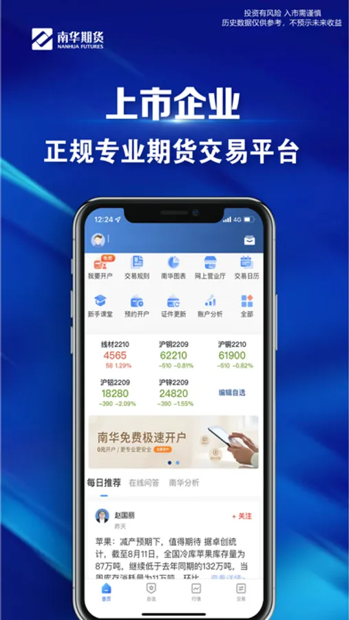 南华期货掌上交易是一款专注于期货行情、资讯的app,支持期货开户、期货交易