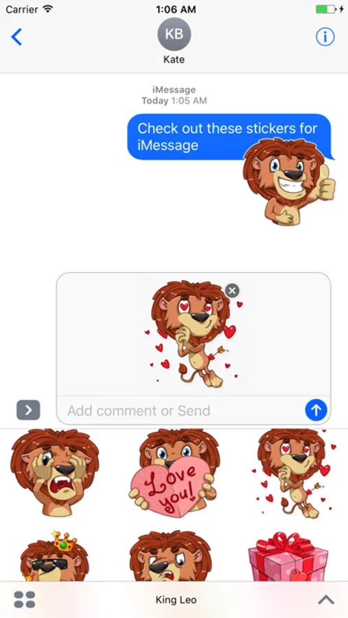 Step 3: Tap the Louie iMessage Stickers icon and start sending stickers!