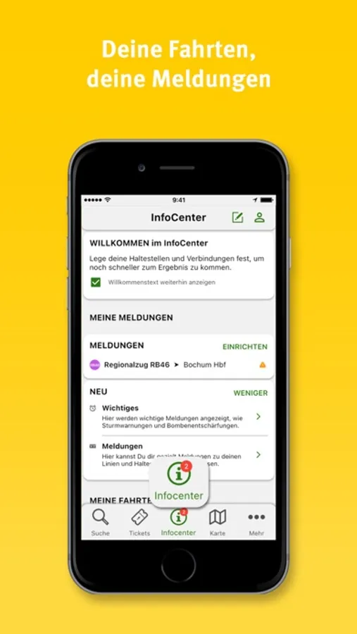 • Persönlicher Bereich: Für regelmäßige Fahrten mit Bus und Bahn kannst du im persönlichen Bereich deine wichtigsten Ziele speichern und erhältst künftig wichtige Informationen auf einen Blick.