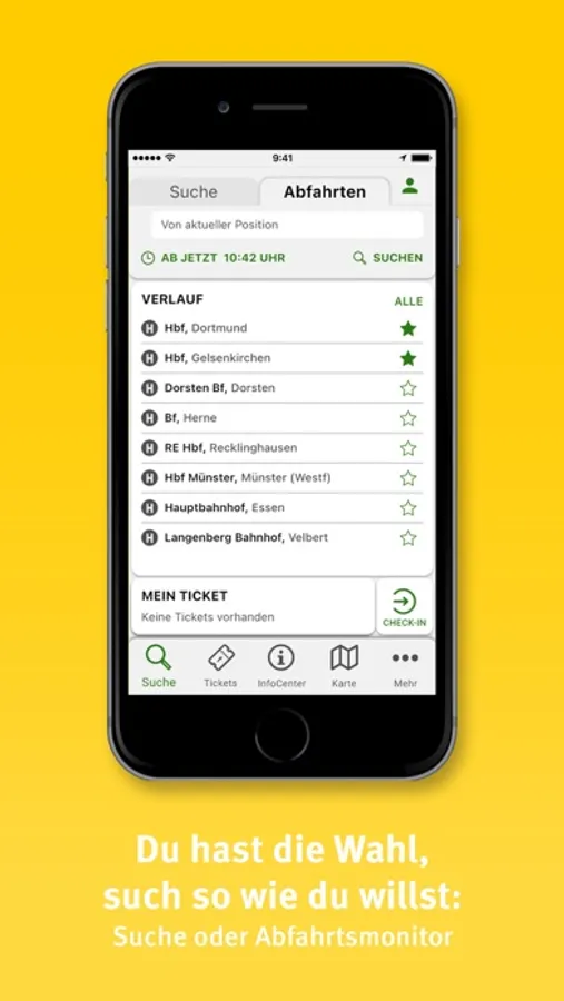 • Abfahrtsmonitor: Du weißt nicht, wann der nächste Bus oder die nächste Bahn an deiner Haltstelle abfährt? Der Abfahrtsmonitor zeigt die nächsten Abfahrtszeiten aller öffentlichen Verkehrsmittel an deiner ausgewählten Haltestelle an.