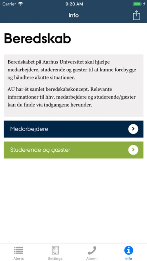 In the app, you can also read more about evacuations and the emergency response system at Aarhus University.