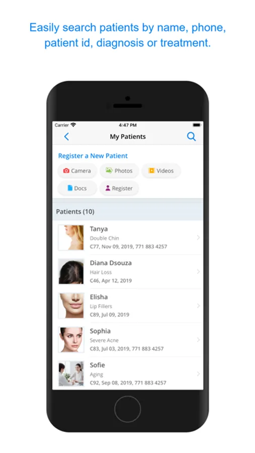 Keep Clinical Notes and Photos always accessible at your fingertip. Efficient and seamless design makes charting patient visits the way you want. CureCast is #1 EMR/EHR app to store, classify and find patient’s pictures by patient name, diagnosis, treatment notes, mobile number, therapist name, services, patient’s case ID, visit date or custom requirement.
