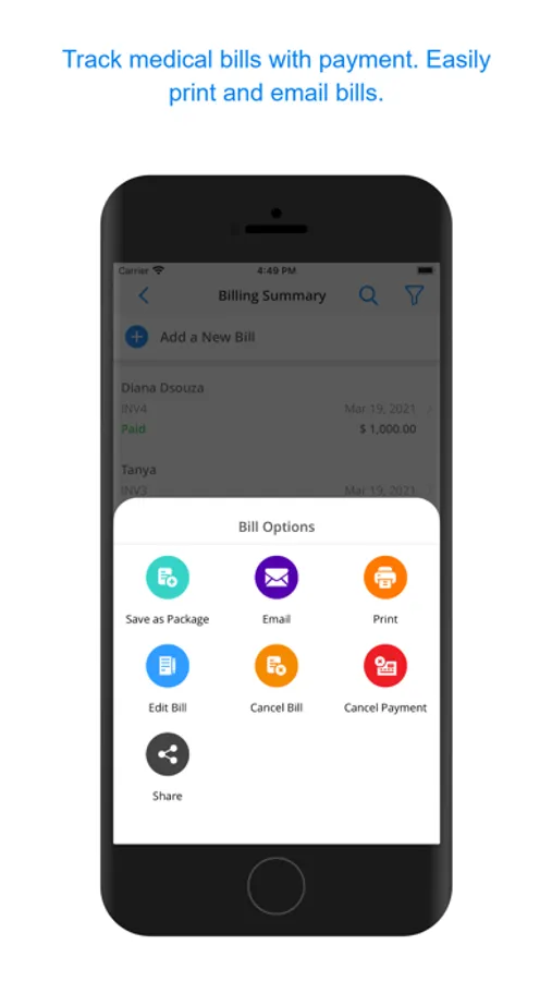 At first sight, doctors can view patients for the day, go over patient's charts, clinical notes, e-prescriptions, appointments, bills, pictures, videos and medical billing. Doctors can also thumb through patient chart notes and review important clinical information in a convenient manner.