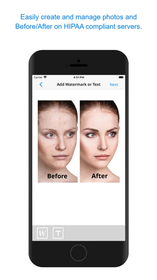 We help you to review patient’s pictures by visit date and create before after in a blink. You can also add watermark andtext to easily share it on social media. You can also save before after by treatment name and create a copy of it in before after module for faster retrieval.
