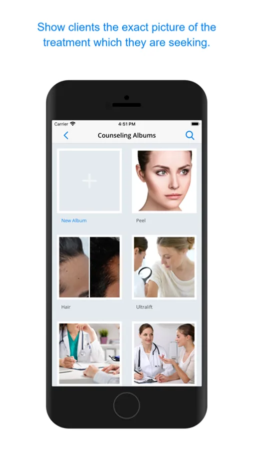 You can build exhaustive picture albums of all your services for new patient education and counseling.