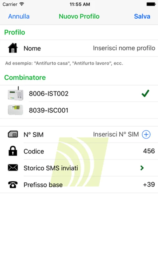 ItalianaSensoriGSM permette la gestione remota dei programmatori telefonici su linea GSM; sono compatibili con la APP i programmatori telefonici GSM articoli 8006-IST002 e 8050-IST003 (da installare all'interno della centrale via radio 8039-ISC001).
