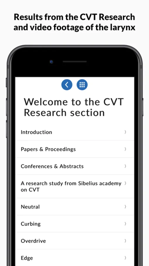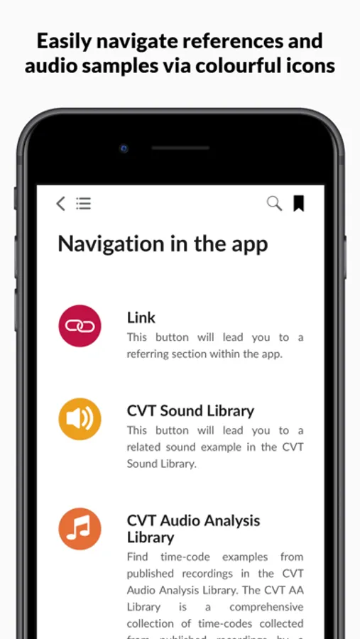 With the Complete Vocal Technique app you get your own personal copy of the entire CVT system available at your fingertips. The app combines easily understandable explanations of vocal technique with pedagogical illustrations, graphs, and research to give quick, practical, and applicable solutions to any issue of the voice. All technical, theoretical and pedagogical explanations are supported by an extensive library of sound examples and singing exercises consisting of real life audio examples sung by professional singers. With the Complete Vocal Technique app you have access to all of this in the palm of your hand - in one app - that you can use wherever and whenever you need it.