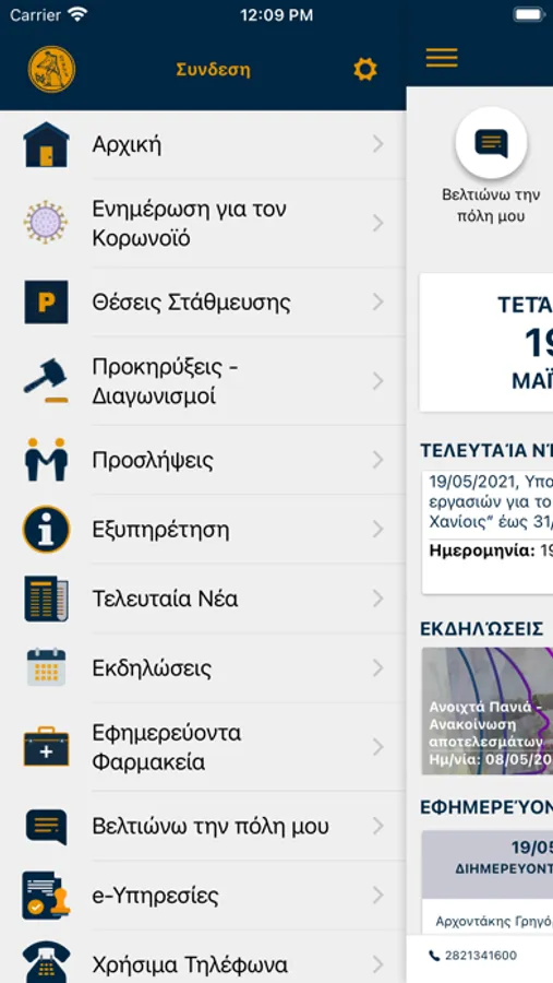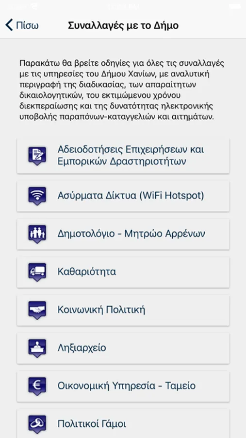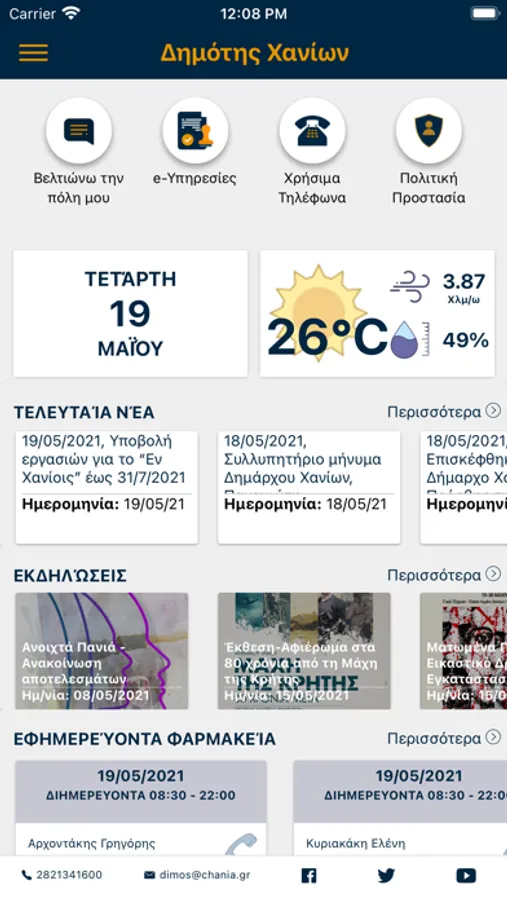 11. Άμεση Επικοινωνία με τον Δήμο Χανίων μέσω τηλεφώνου, email
