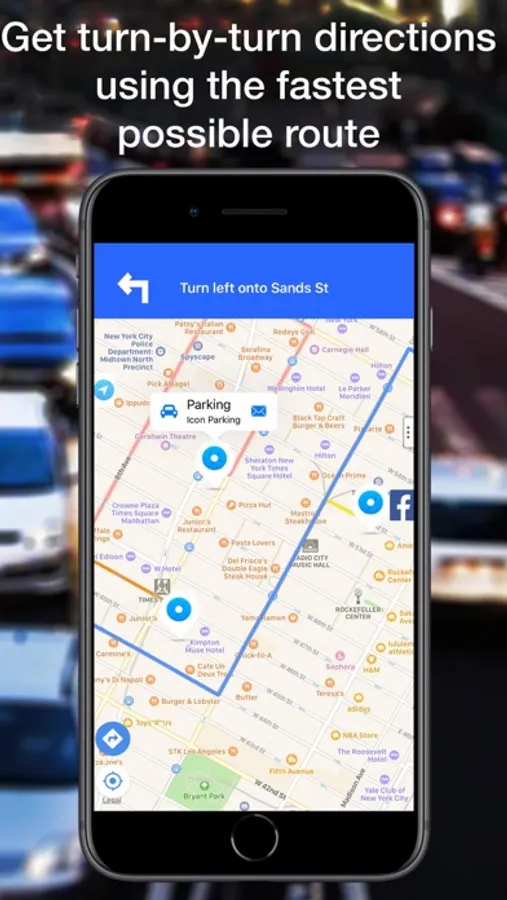 Traffie automatically shows alternate routes to a parking spots near your destination.