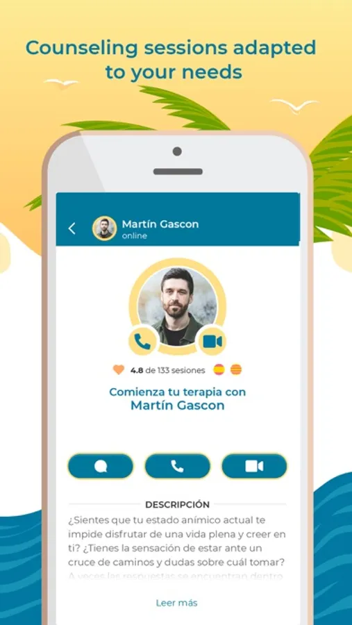 - Instant sessions: You can always contact a professional, just when you need it.