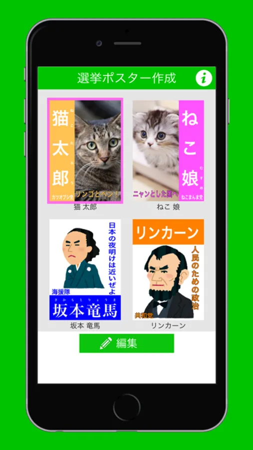 選挙ポスターをiphoneで手軽に作成できるアプリです。