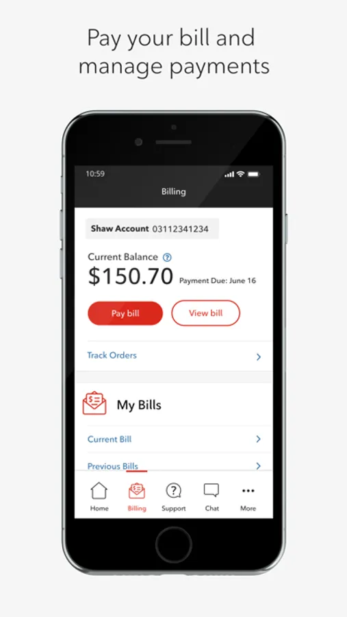 • Jump into your account faster with your Shaw ID or, Face ID or by just using your thumbprint with Touch ID.
