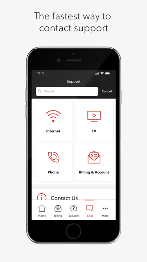 • The fastest way to connect with the support you need and chat with a real representative right in the app