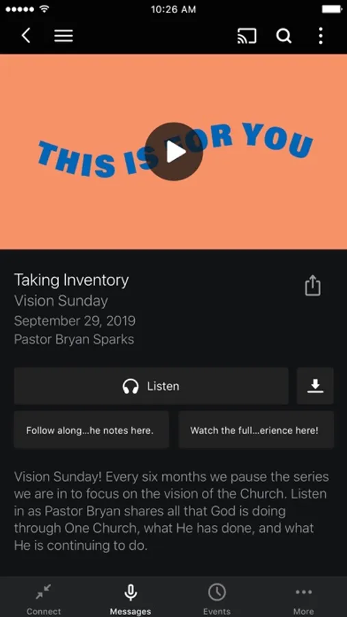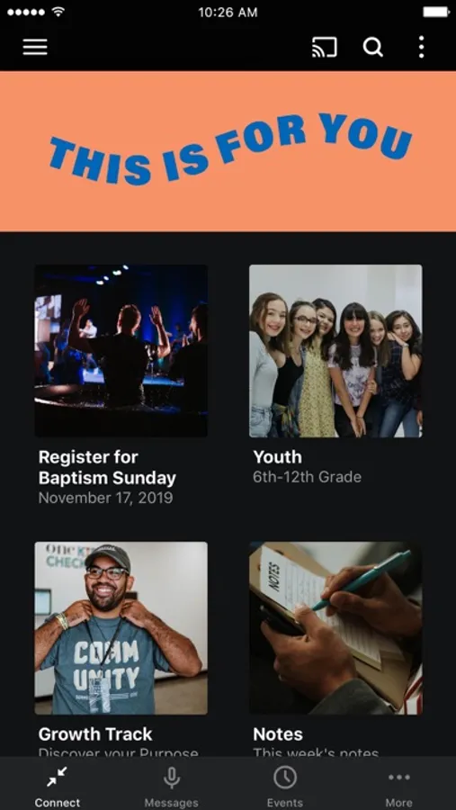 The One Church App was created with the Subsplash App Platform.