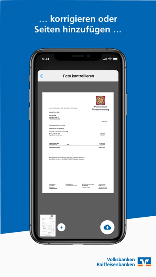 • Fotografieren von Rechnungen oder Auswahl von Bildern aus der Galerie