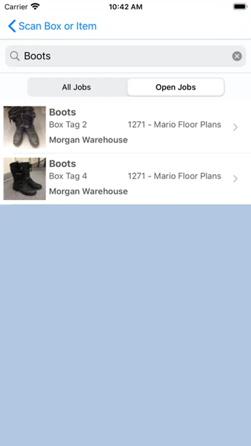 TrackIt delivers a real-time inventory tracking solution for your pack outs in Assured JobCheck™. Use an iPhone or iPad (data connection required) to scan boxes and large items as they are moved from the loss location to your storage facilities.