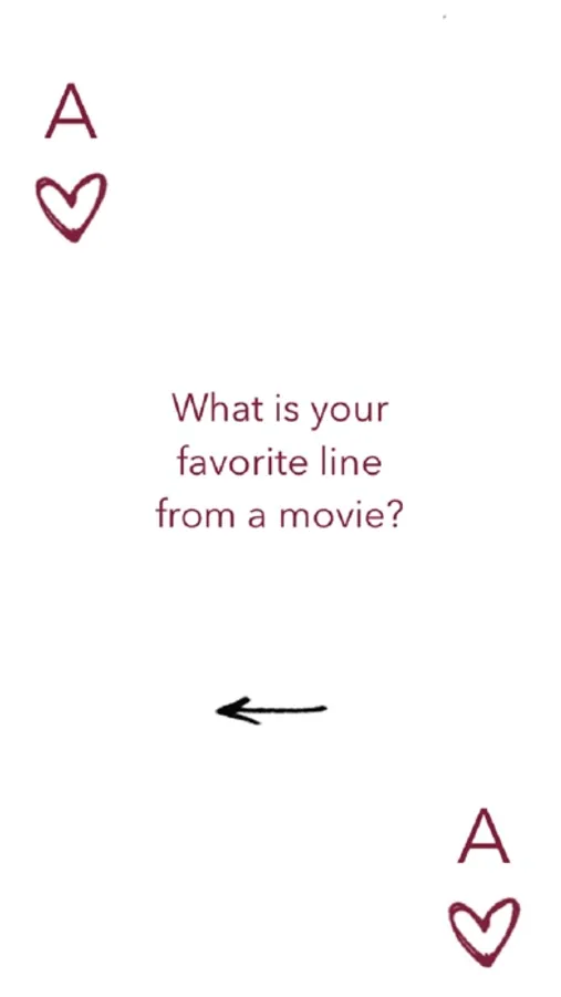 The “pick a card” concept makes breaking the ice easy. Ditch the anxiety which comes with having to find the right question, and pick a card instead! It’s as simple as choosing a card from a standard deck of cards to reveal a question from the chosen category/categories.