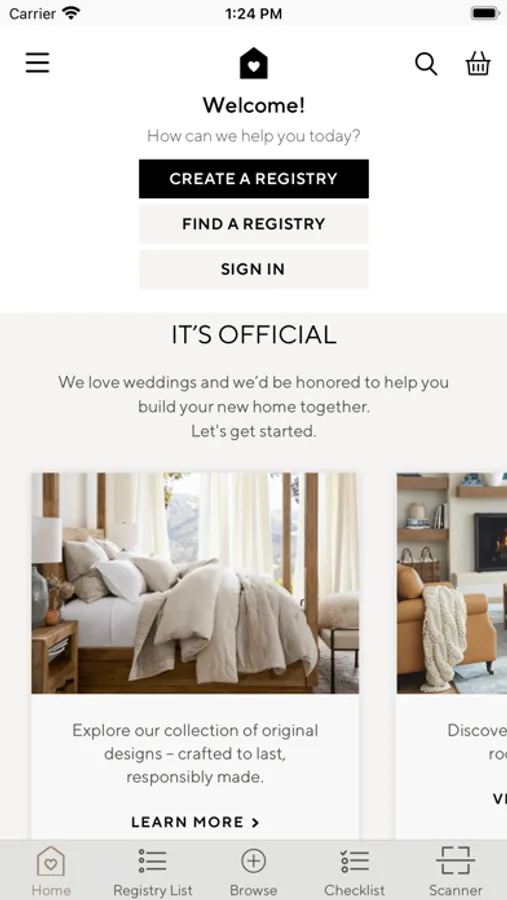 Download the Pottery Barn Wedding Registry app to create and manage your registry on the go. From “yes” to “I do” to “thank you,” we’ll be with you every step of the way.