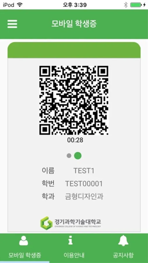 경기과학기술대학교 모바일학생증 서비스 이용 안내