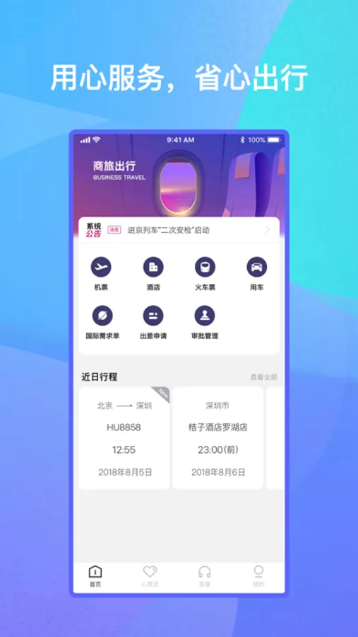出行助手,作为一款差旅APP管理软件,专注于为企业提供机票、酒店、火车票、用车等差旅产品及服务;与此同时,加入审批和差标管控功能,使企业做到真正意义的差旅管理。