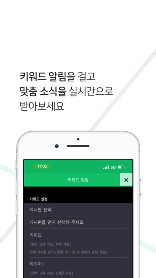 - 키워드 알림 : 특정 관심 키워드 푸시 알림 받기