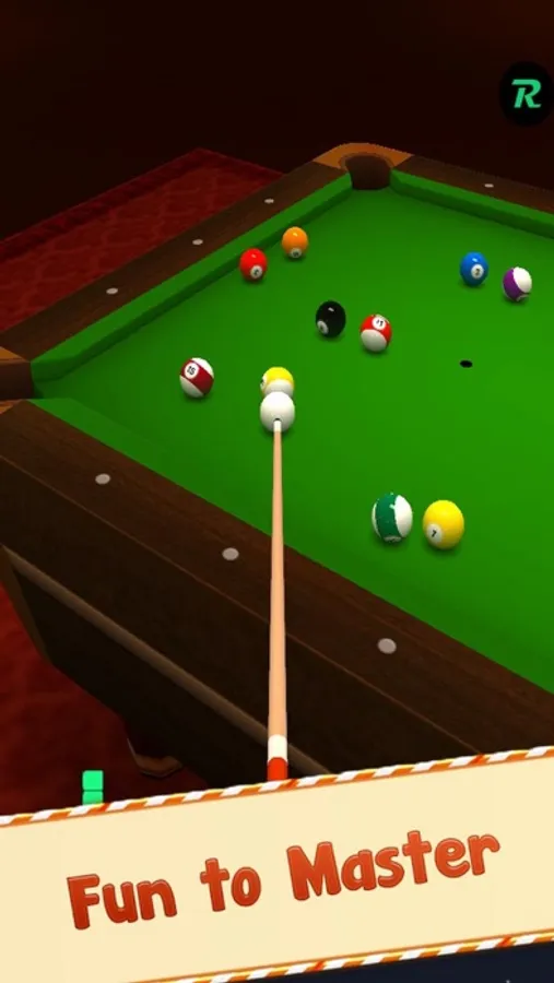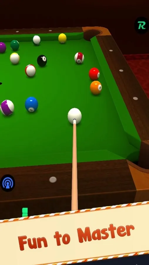 - Real 3D 8 ball physics with smooth controls of snooker stick