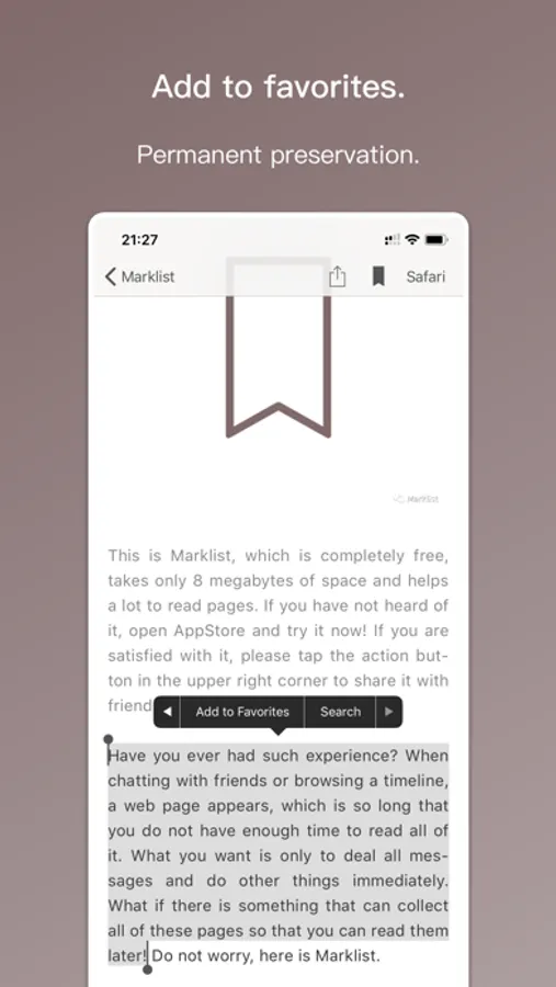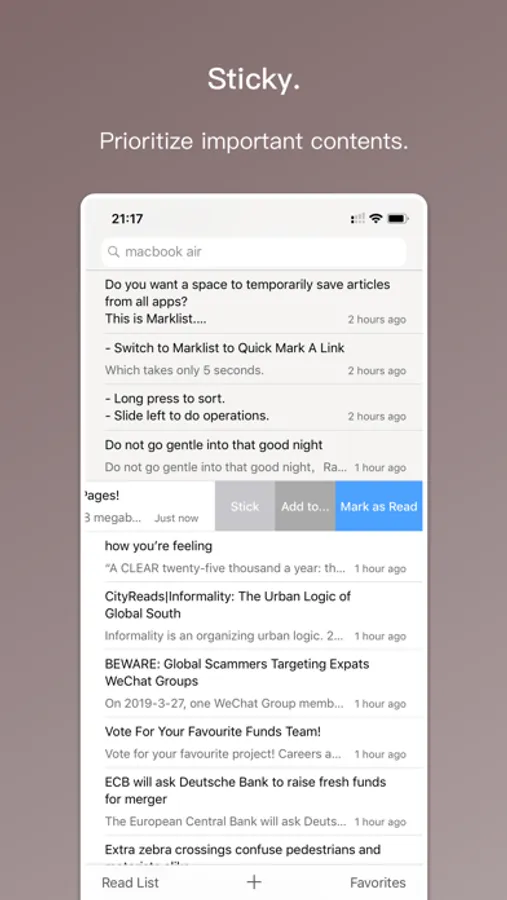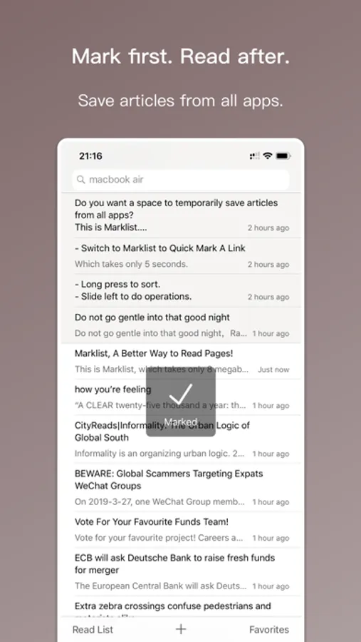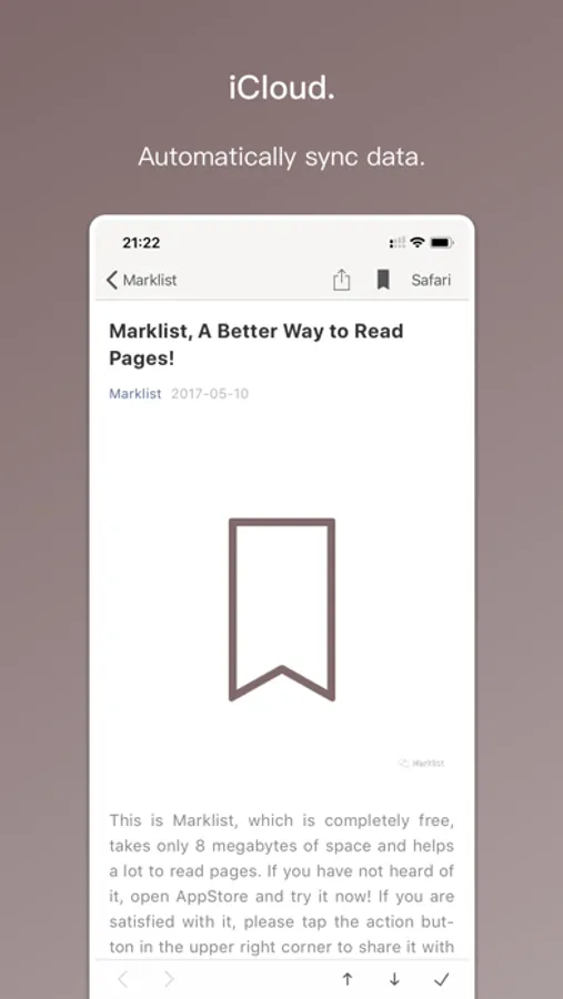 The Mac version of Marklist is also available on the Mac App Store, so if you are a Mac user, you can install it together and the data will be automatically synced through iCloud in real time.
