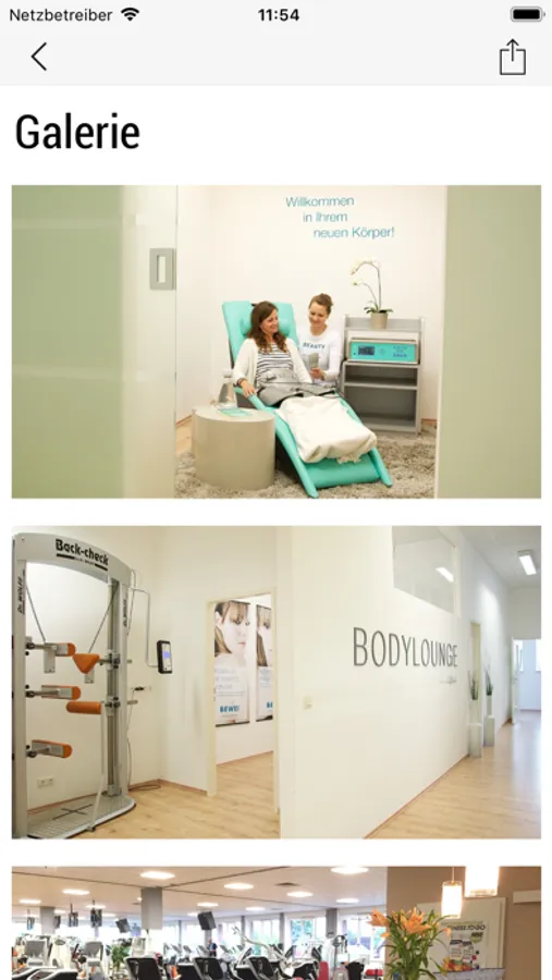 Das Wichtigste sofort im Blick: Suchen Sie nicht lange nach wichtigen Infos wie Öffnungszeiten und Kontaktdaten mehr. Dank der App genügt ein Klick auf das Smartphone, um Ihnen im Nu die gewünschten Informationen zu liefern. Stöbern Sie zusätzlich entspannt in aktuellen Studiofotos – ob Sie nun zu Hause auf der Couch liegen oder gerade am Bahnhof warten müssen. Hilfreiche Trainingstipps runden Ihre mobile Infoplattform ab. Der Clou: Alle Meldungen können Sie sofort per E-Mail mit Freunden und Bekannten teilen.
